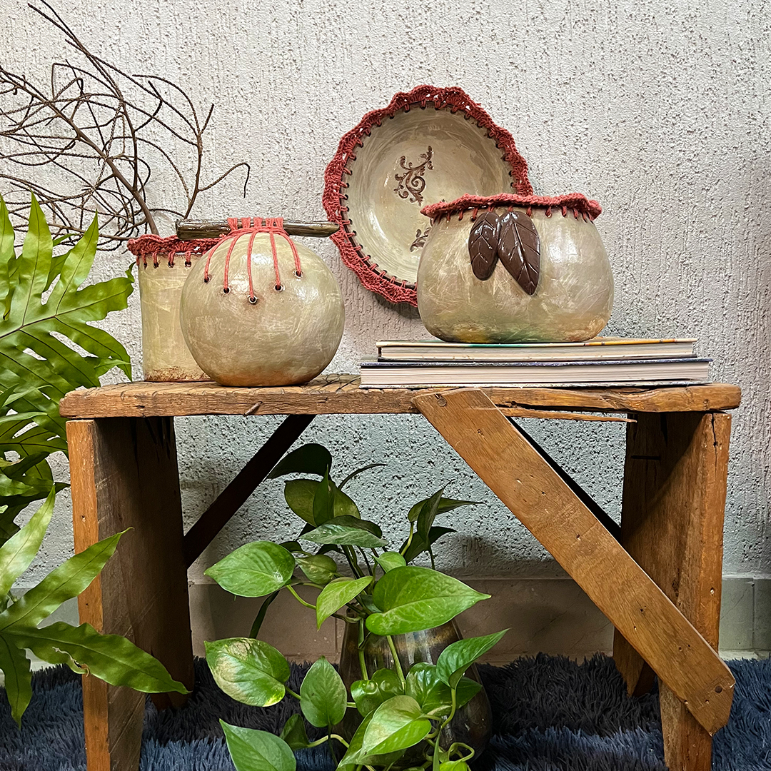 Conjunto de 4 peças decorativas em cerâmica artesanal.