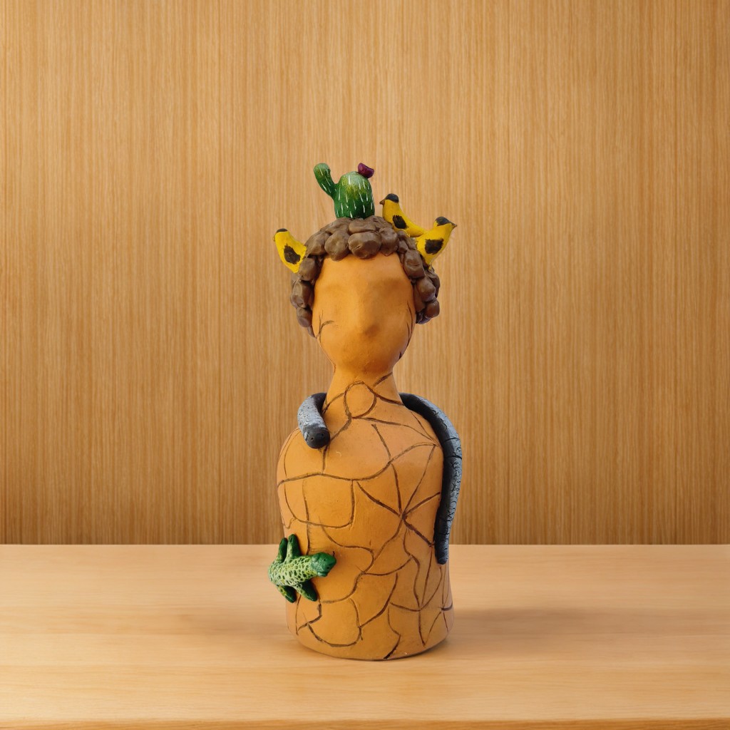Sertão. Escultura decorativa em cerâmica artesanal, com estilo lúdico e orgânico.